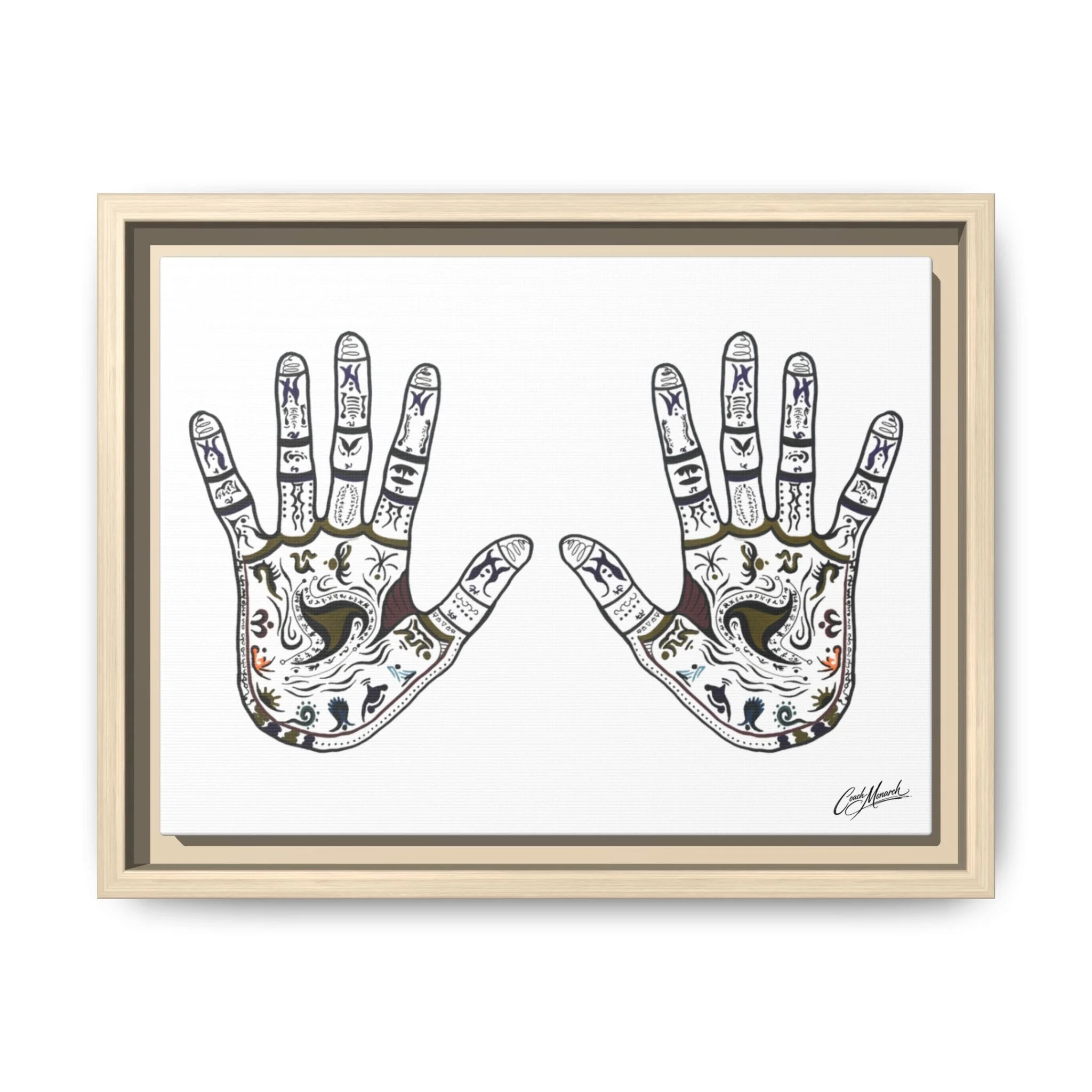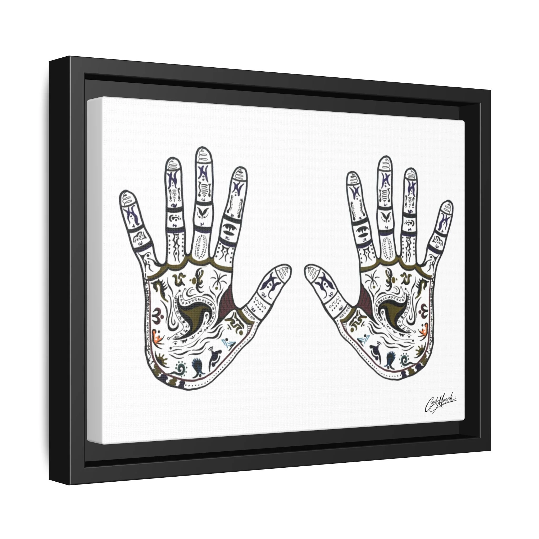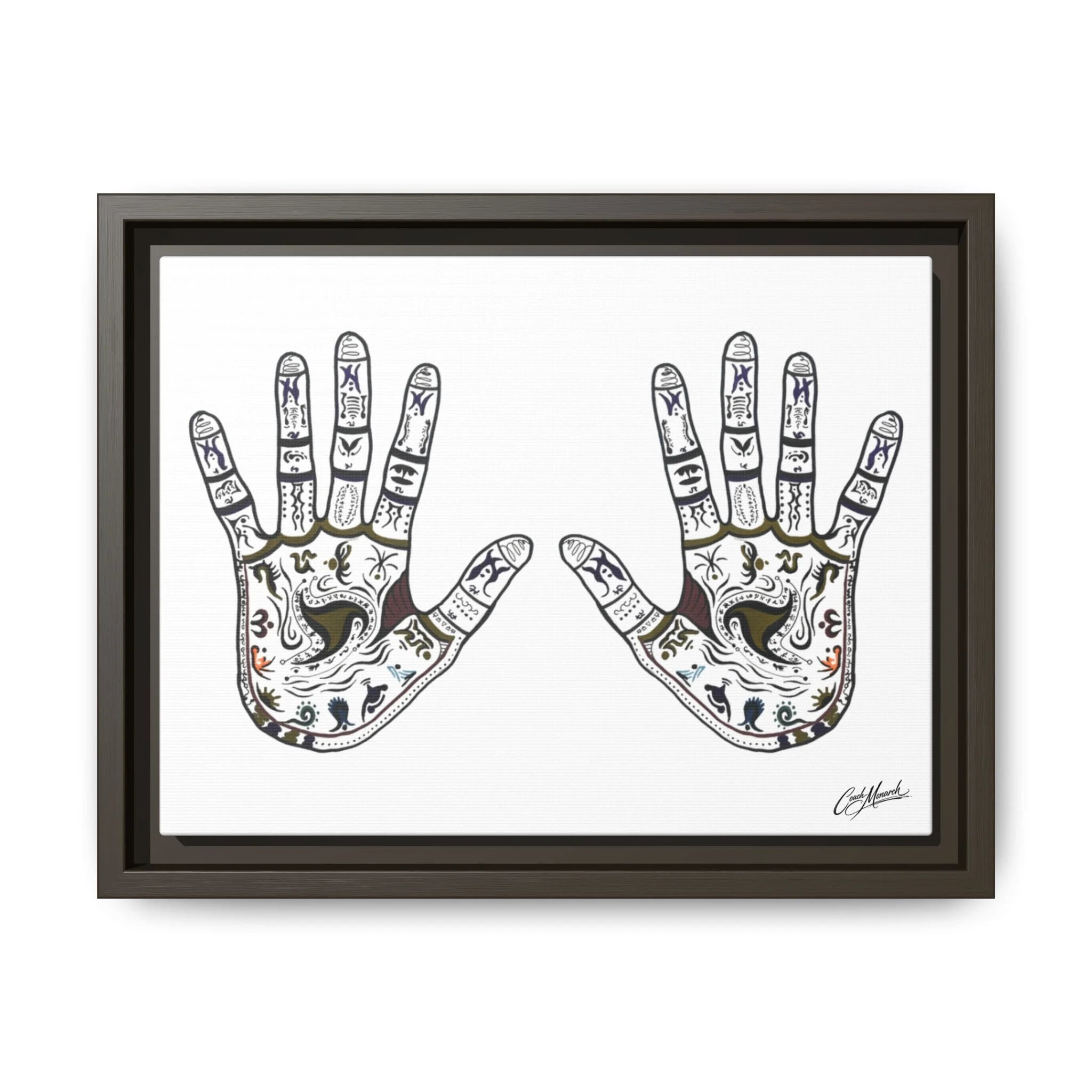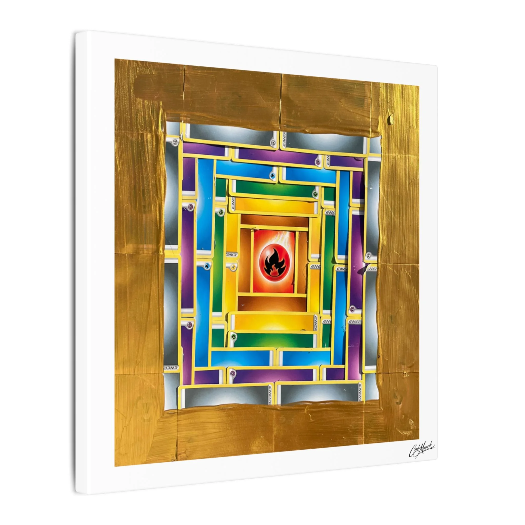 This stretched matte canvas brings together spiritual geometry and monarch symbolism in a calm, contemplative wall piece. Layers of mandala patterns are blended with the colors of the chakras, guiding the eye inward while celebrating the Monarch motif woven through each ring.